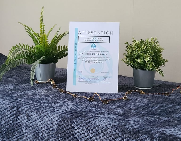En quête permanente d'apprentissage, je me suis formée au massage bien-être afin de vous proposer une prestation alliant kinésiologie et massage ou bien tout simplement pouvoir profiter d'un moment de profonde détente afin de retrouver la sérénité et de vous reconnecter avec vous même.